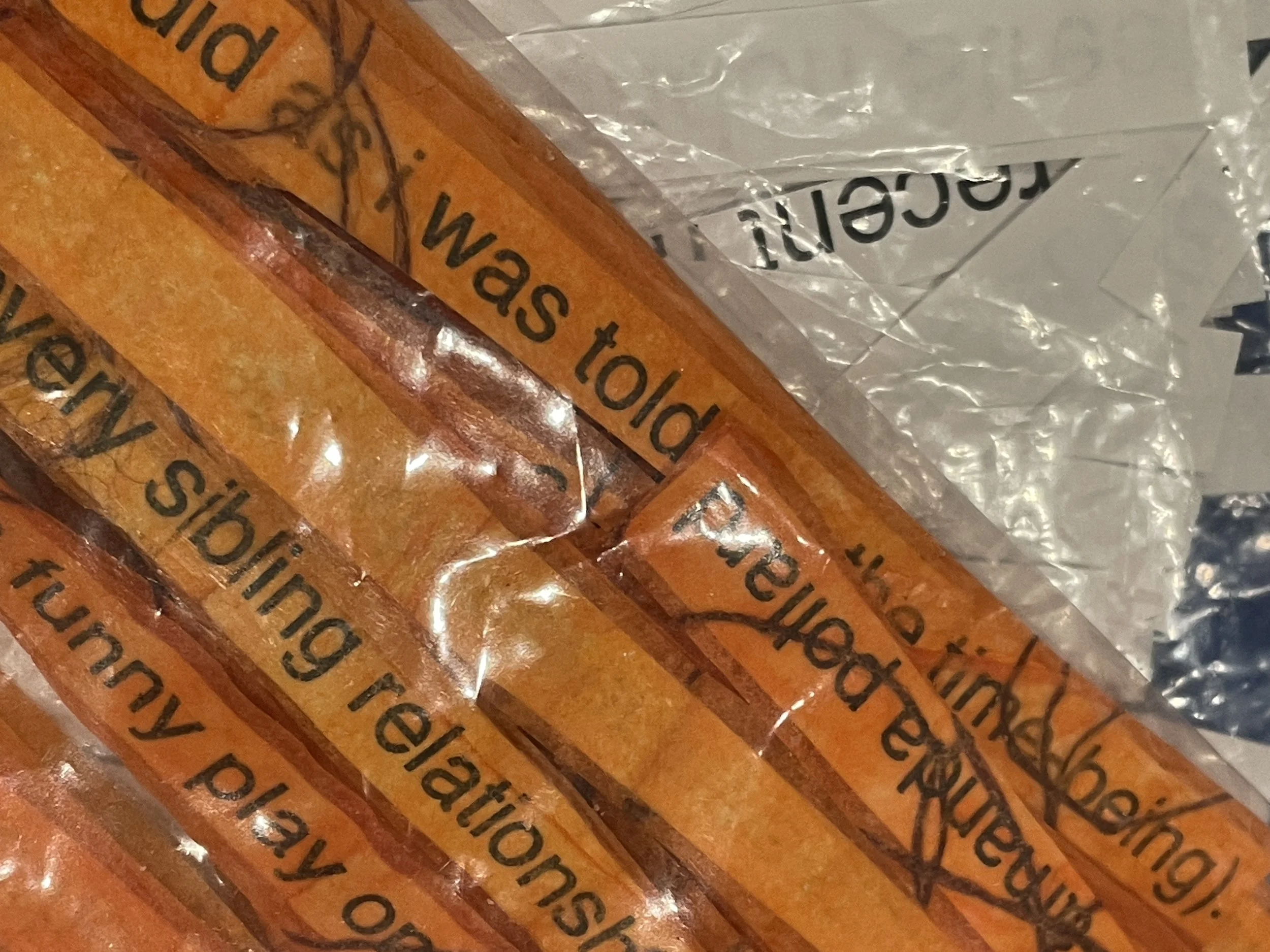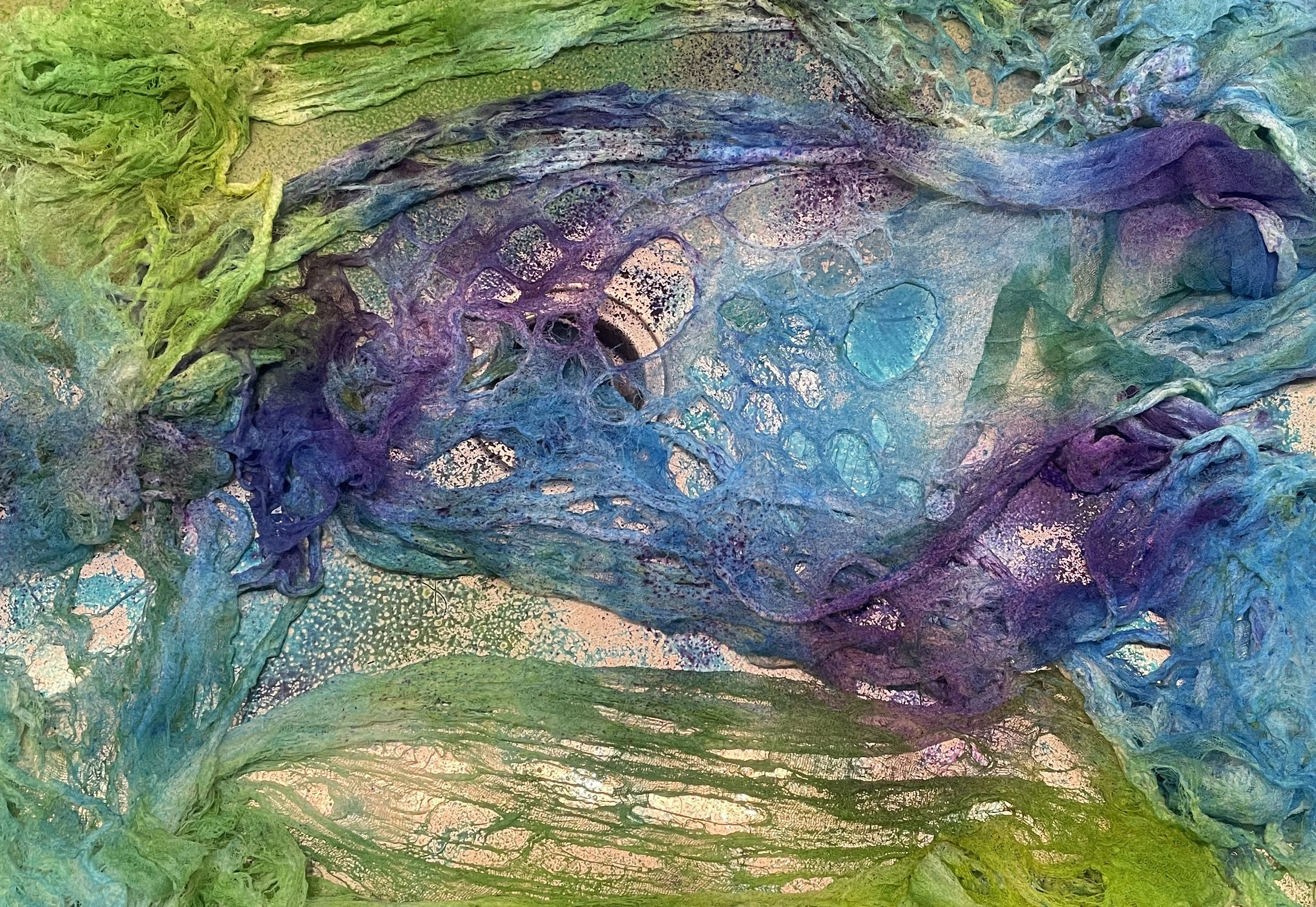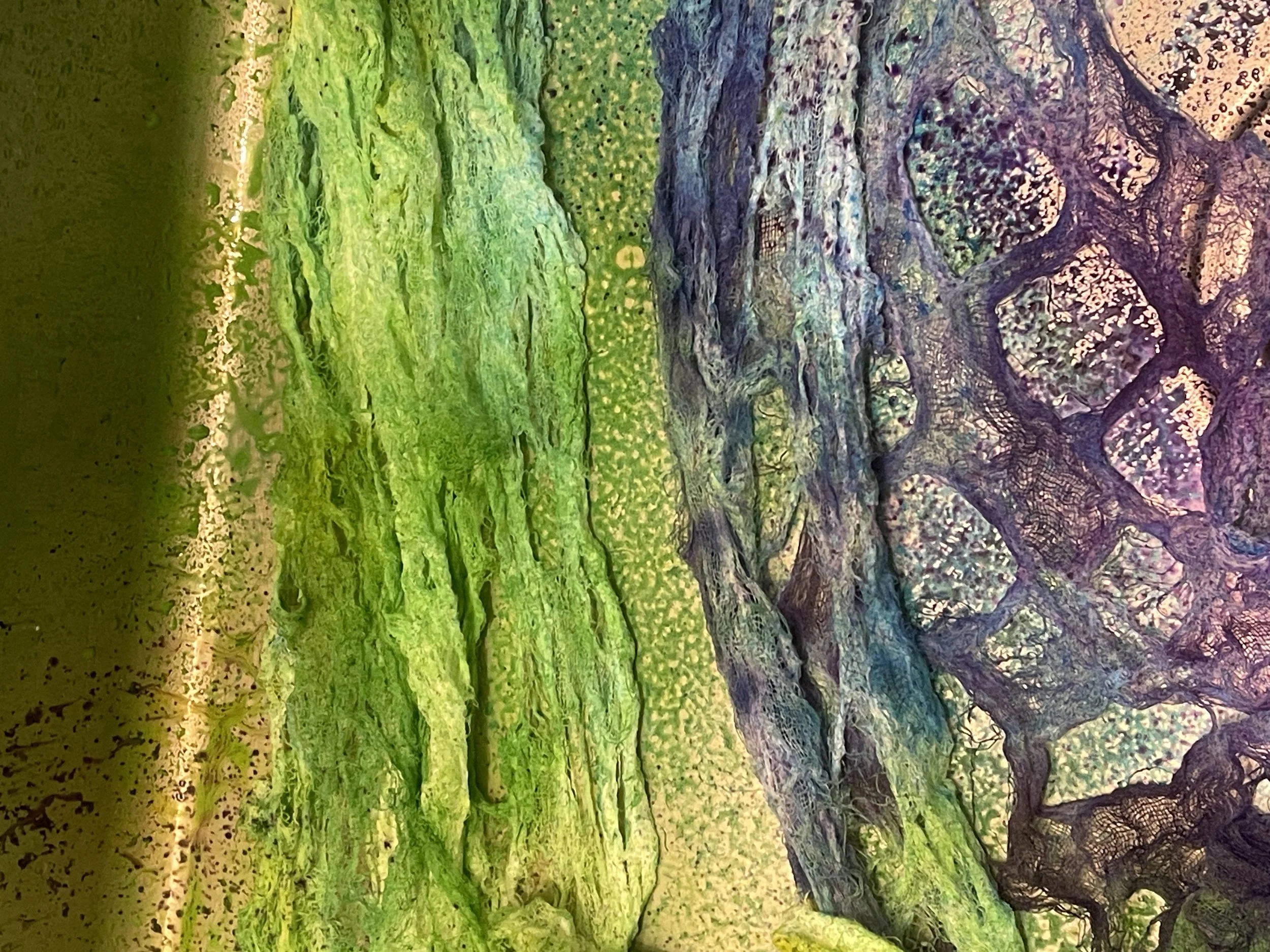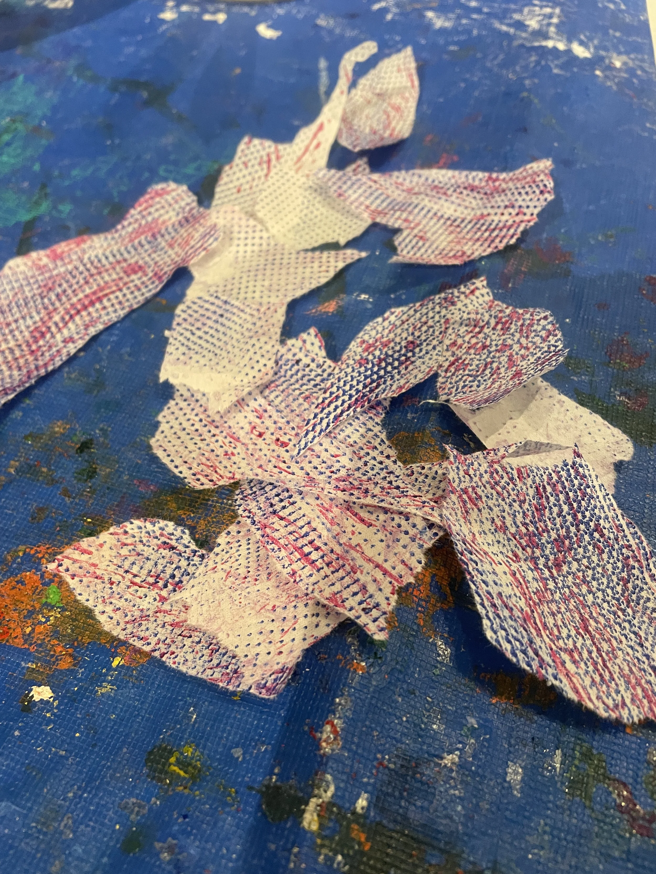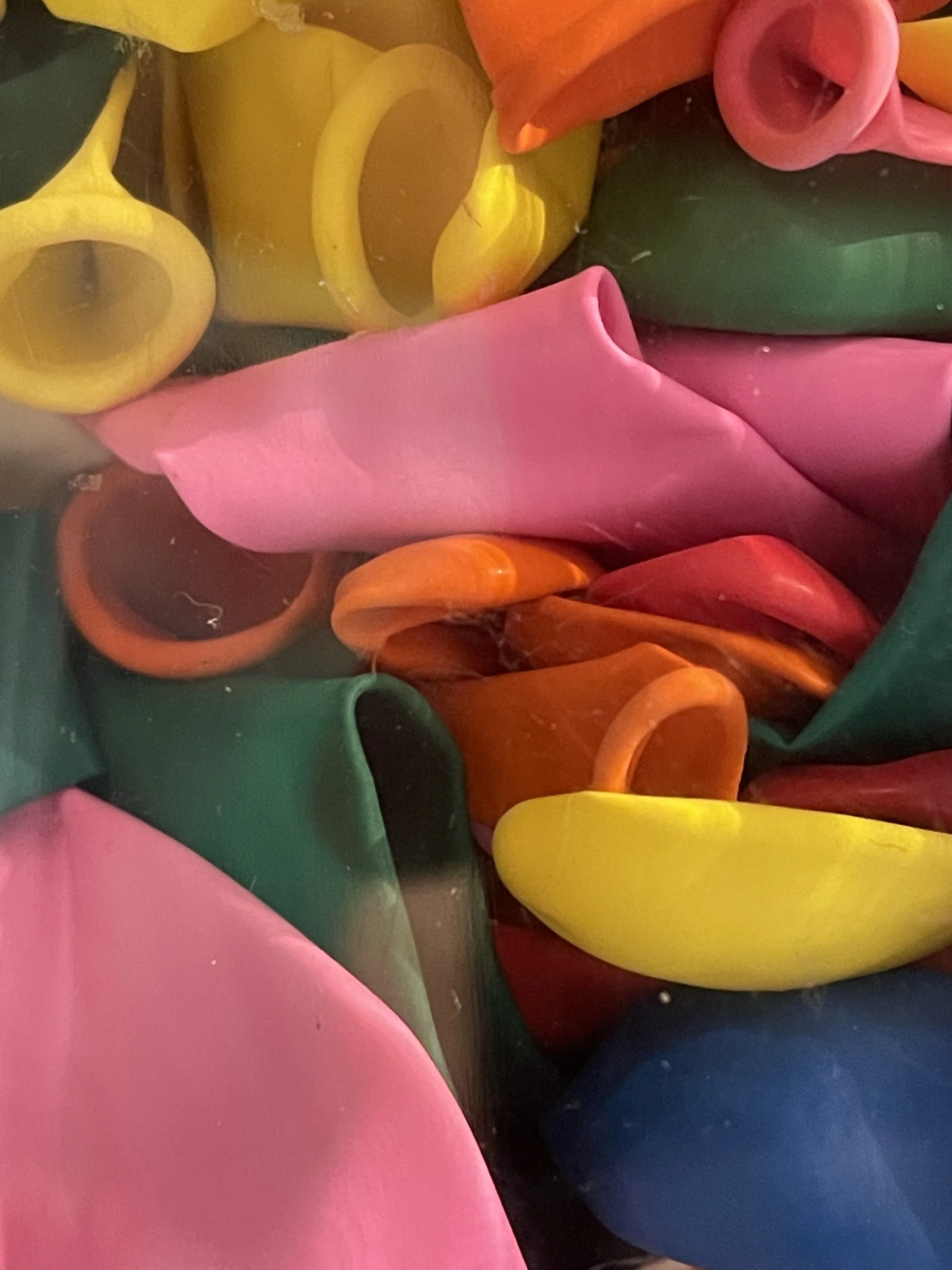 See the various components of “Connective Tissue” as the project evolves. There are balloons, tissue paper, crayons (for wax rubbings), cheesecloth, and more. The stories will be painted, torn and collaged onto balloons, written on ribbons, etc., and more will be added from time to time.